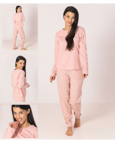 Nuevo Eliminar de lista Lista de deseos Vista rápida Carro Comparar Pijama florecillas MUJER Precio 26,80 € S M L XL Pijama de punto de señora con pantalón estampado y puños en los tobillos