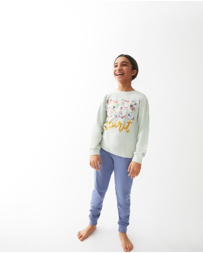 Eliminar de lista Lista de deseos Vista rápida Carro Comparar Pijama niña Lucky to have you INFANTIL Precio 21,80 € Azul 10 12 14 16 Pijama de niña de punto con dibujo en la camiseta y pantalón estampado