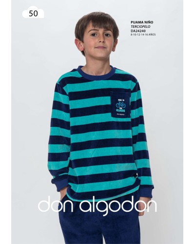Eliminar de lista Lista de deseos Vista rápida Carro Comparar Pijama de niño INFANTIL Precio 21,50 € estampado 8 10 12 14 16 Pijama de terciopelo con puños en camiseta y pantalones con estampado de rayas