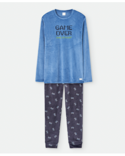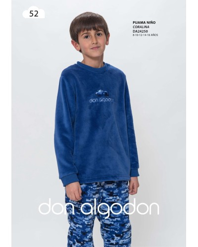 Eliminar de lista Lista de deseos Vista rápida Carro Comparar Pijama de niño INFANTIL Precio 19,50 € azulón 8 10 12 14 Pijama de coralina con puños en camiseta y pantalón de color azul con el pantalon estampado