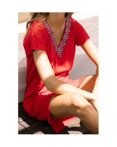 Eliminar de lista Lista de deseos Vista rápida Carro Comparar Vestido rojo MUJER Precio 25,60 € M L XL Vestido de manga corta con escote en V y pequeño detalle de una cenefa en él