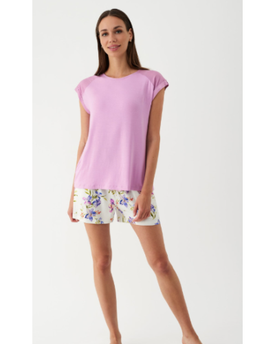 Eliminar de lista Lista de deseos Vista rápida Carro Comparar Pijama pantalón corto MUJER Precio 32,60 € malva M L XL Pijama pantalón corto de tejido viscosa estampado floral en tonos lilas sobre fondo blanco combinado con camiseta manga corta lila con espalda en...