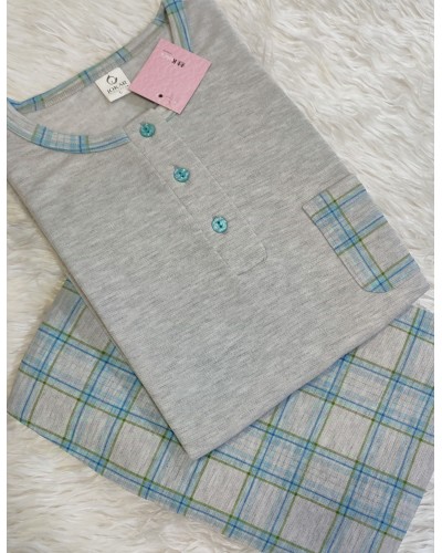 Eliminar de lista Lista de deseos Vista rápida Carro Comparar Pijama de mujer MUJER Precio 18,50 € Gris jaspeado turquesa M L XXL Pijama de mujer en interlock afelpado en el interior . Con tapeta y botones en el escote, y puños en el pantalón