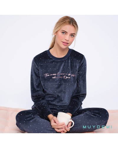 Eliminar de lista Lista de deseos Vista rápida Carro Comparar Pijama de mujer MUJER Precio 32,60 € estampado S M L XL XXL Pijama en terciopelo técnico sin puños en la mangas y con puño en el pantalón.