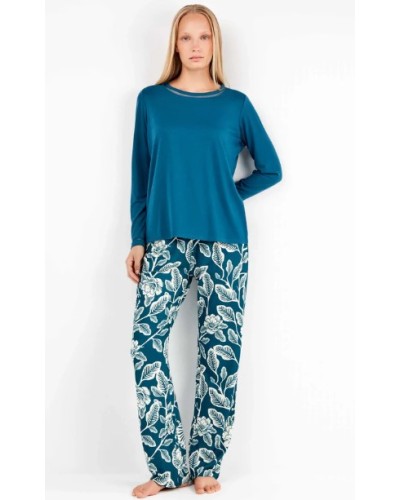 Eliminar de lista Lista de deseos Vista rápida Carro Comparar Pijama con pantalón... MUJER Precio 32,30 € Azul S M L Pijama en tejido de punto microprint con camiseta de manga larga y pantalón recto con cintura elástica y cordón en estampado floral a contraste.