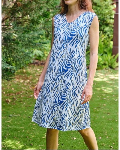 Nuevo Eliminar de lista Lista de deseos Vista rápida Carro Comparar Vestido Muslher MUJER Precio 24,50 € S M L XL XXL 3XL Vestido de verano con escote pico, un tejido de los más ligero para los días de calor y un estampado en tono azul muy actual.