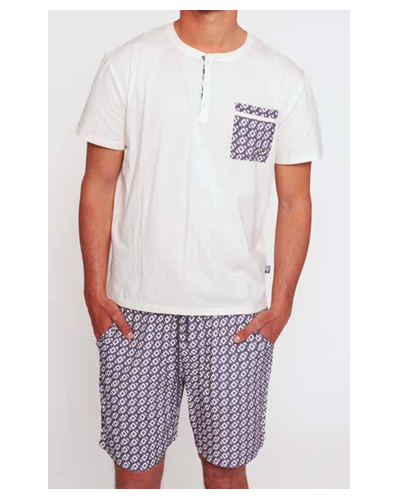 Eliminar de lista Lista de deseos Vista rápida Carro Comparar Pijama caballero DIVER HOMBRE Precio 29,90 € M L XL Pijama de punto de algodón, de manga corta de rayas con cuello redondo y pantalón corto.