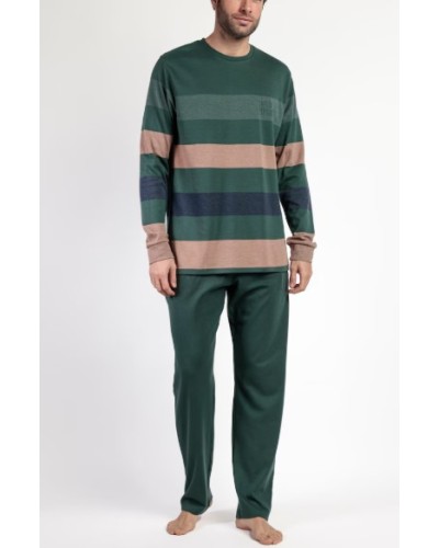 Eliminar de lista Lista de deseos Vista rápida Carro Comparar Pijama rayas HOMBRE Precio 48,20 € M L XL 3XL Pijama de punto de algodón, de manga larga, cuello redondo y pantalón largo. Camiseta de punto interlock, en color verde, con detalles en relieve...