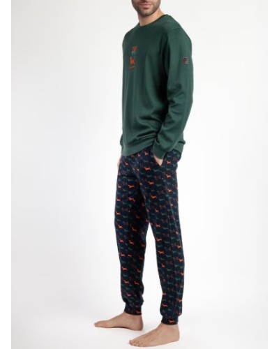 Eliminar de lista Lista de deseos Vista rápida Carro Comparar Pijama teckel HOMBRE Precio 45,90 € M L XL Pijama de punto de algodón, de manga larga, cuello redondo y pantalón largo. Camiseta de punto interlock, en color caqui, con detalle flocado, de...