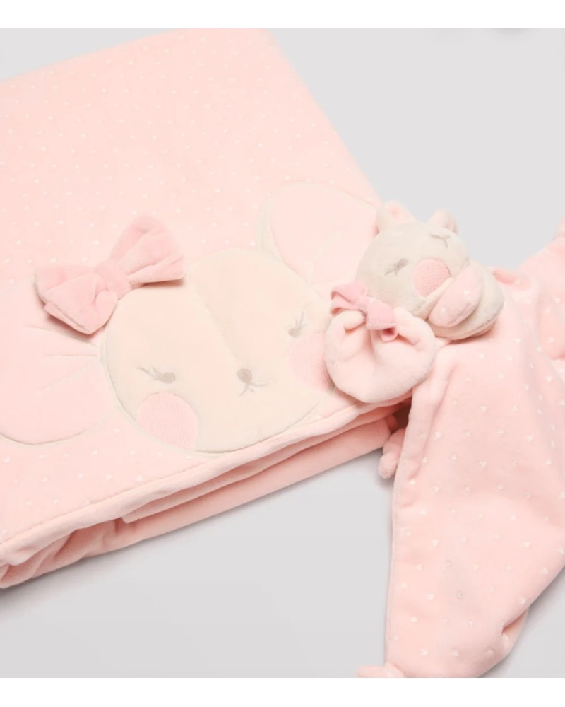 Colección Lovely Dream. Este conjunto incluye una suave manta y un tierno doudou, diseñados para brindar confort y calidez a tu bebé en todo momento. La manta es perfecta para arropar a tu pequeño durante la siesta o para mantenerlo abrigado en paseos al aire libre. Mientras tanto, el doudou ofrece consuelo y compañía con su suave textura y su encantador diseño.