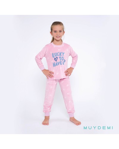 Eliminar de lista Lista de deseos Vista rápida Carro Comparar Pijama niña lucky to have u INFANTIL Precio 23,40 € Rosa 10 12 14 16 Pijama de niña de terciopelo con dibujo en la camiseta y tejido estampado