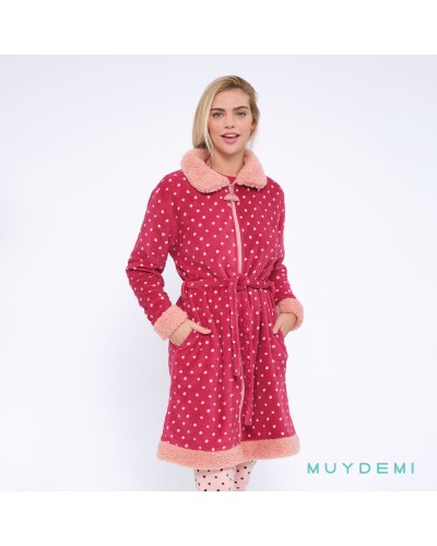 Eliminar de lista Lista de deseos Vista rápida Carro Comparar Bata mujer topos MUJER Precio 24,50 € fucsia M L XL XXL Bata de señora con estampado de topos, mangas y puños de borreguito