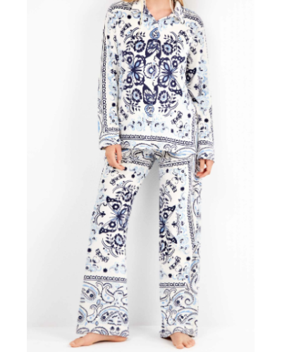 Eliminar de lista Lista de deseos Vista rápida Carro Comparar Pijama de Paisley MUJER Precio 49,90 € S M L Pijama camisero en tejido polar elástico estampado paisley con camisa con botones delanteros y pantalón recto con cintura elástica y cordón.