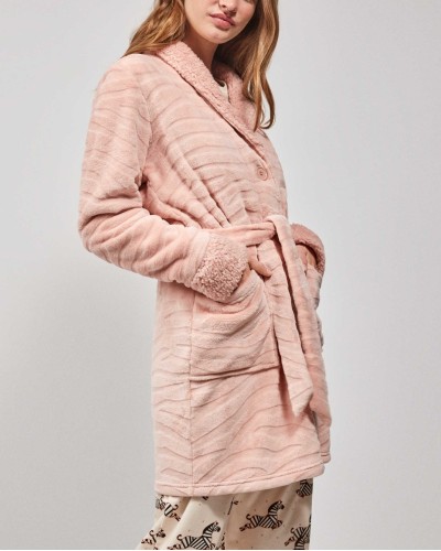 Eliminar de lista Lista de deseos Vista rápida Carro Comparar Bata larga tejido peluche MUJER Precio 33,20 € Rosa M L XL Bata larga en tejido de peluche con detalle de borrego en mangas y solapa al tono. Cierre de botones y lazo. Disponible en varios colores.