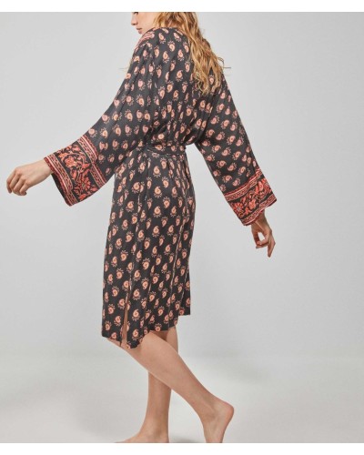 Eliminar de lista Lista de deseos Vista rápida Carro Comparar Bata larga estampado paisley MUJER Precio 33,20 € estampado S/M L/XL Bata larga en tejido viella con estampado paisley de manga media y anudada a la cintura con lazo. Combínala con pijama a juego.