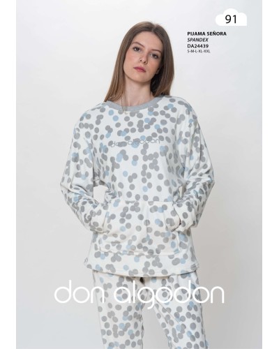 * Pijama de punto de algodón, de manga larga, cuello redondo y pantalón largo.