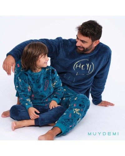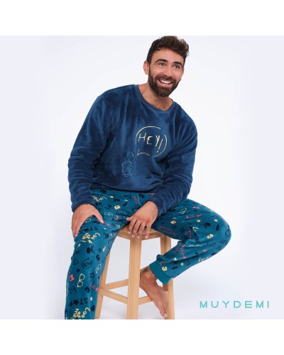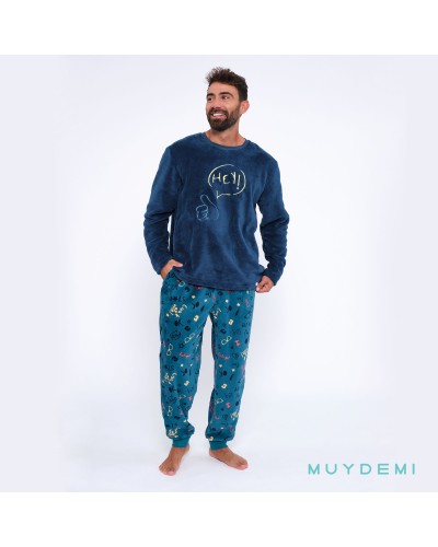 Pijama para hombre de coralina con dibujo en la camiseta y pantalón estampado
