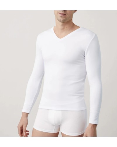Esta camiseta interior para hombre con manga larga y cuello pico es una prenda versátil y moderna. Puedes usarla debajo de tu ropa casual o formal, dándole ese toque especial a tus outfits de invierno. Ya sea en una reunión de negocios o en una salida con amigos, estarás siempre listo para enfrentar el frío sin perder estilo.