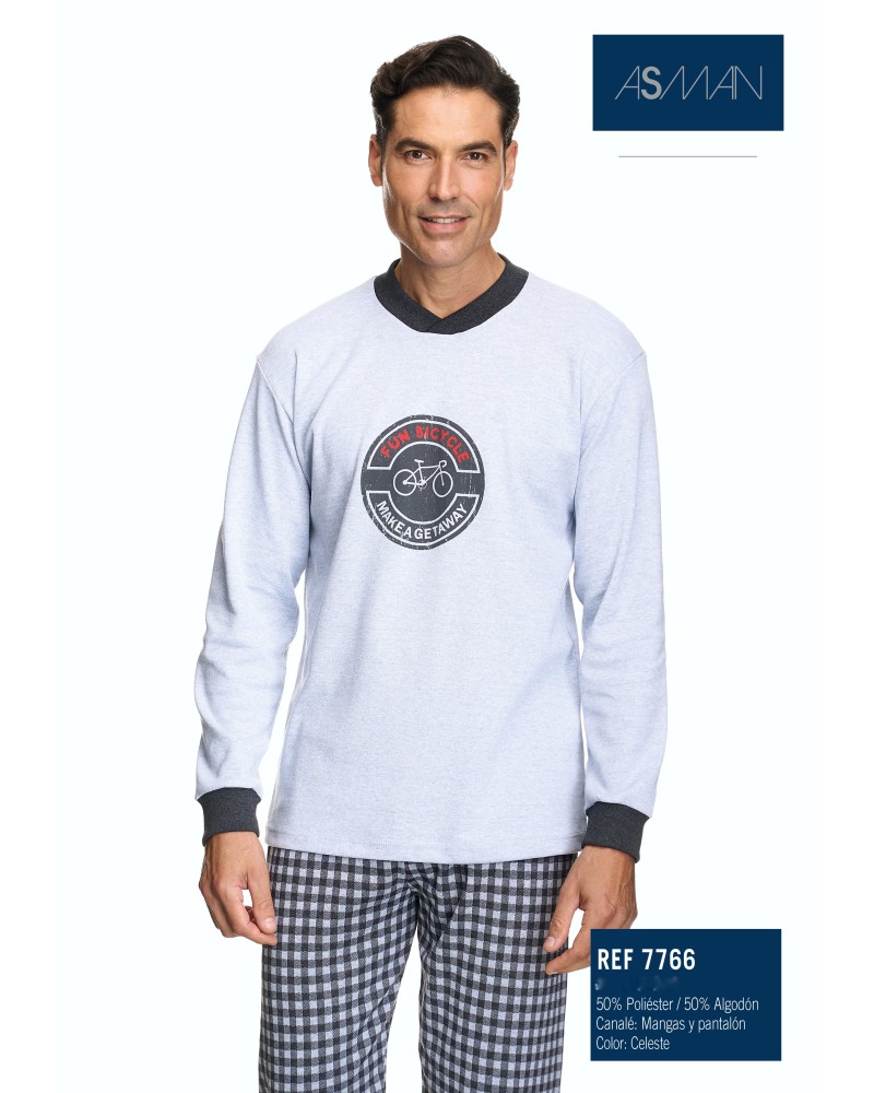 Pijama caballero con puño en brazos y piernas. Afelpado interior