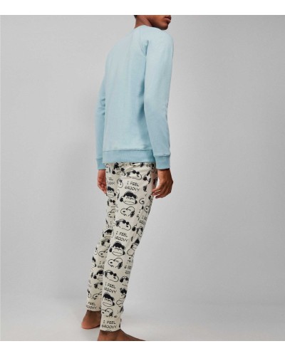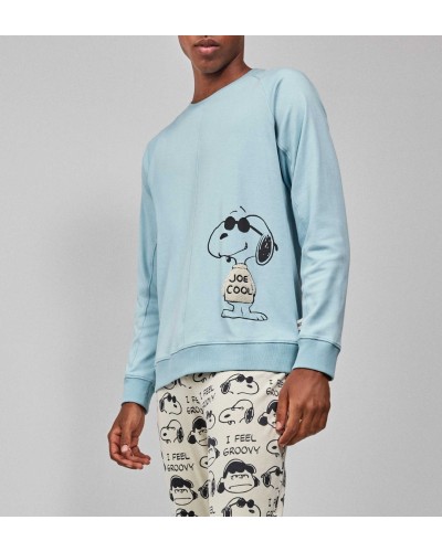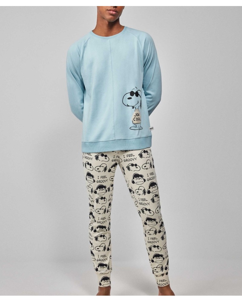 tejido punto interlock con camiseta de manga larga estampada de Snoopy. Pantalón largo estampado a contraste ajustable en cintura.
