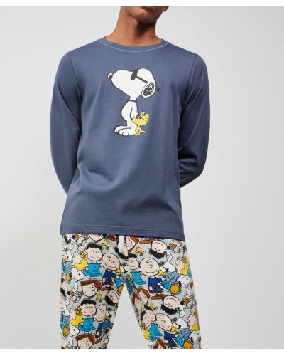 Pijama en tejido punto de viscosa con camiseta lisa y detalle de galón de encaje en hombros. Pantalón con estampado paisley ajustable en cintura...