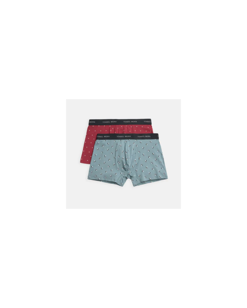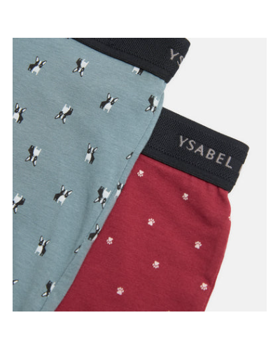 Pack de 2 bóxers estampados confeccionados en algodón natural. Cada modelo presenta un estampado canino diferente que aporta un aire original y desenfadado. La cinturilla elástica con el logo de la marca añade un acabado cómodo y reconocible.