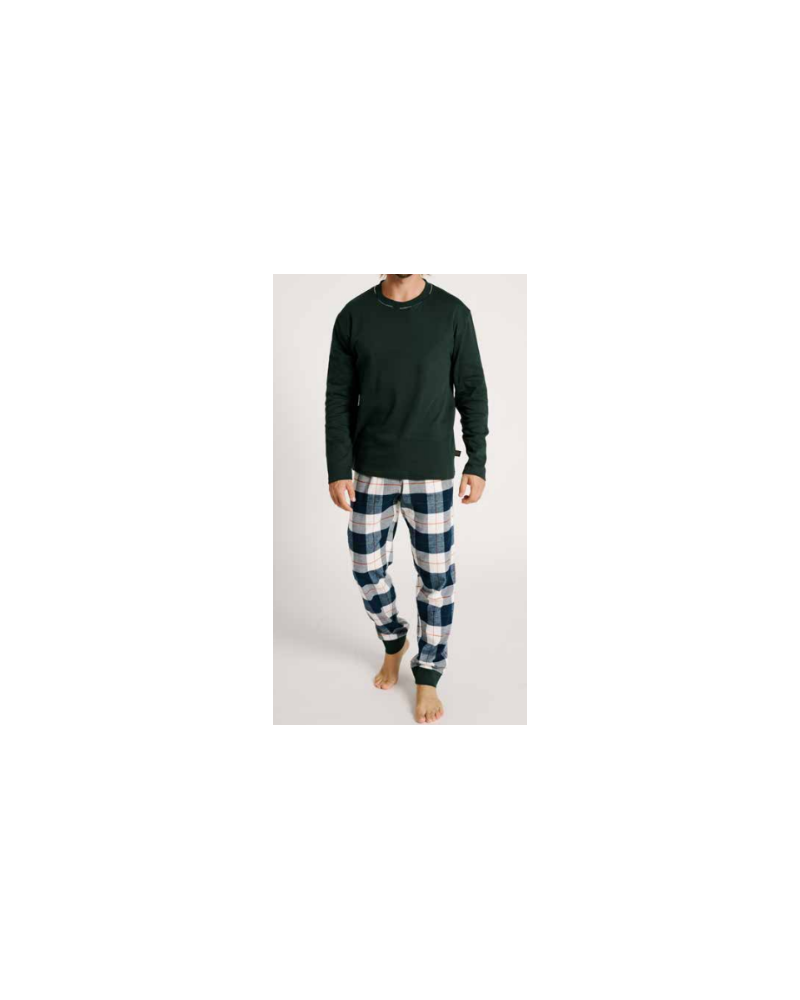 Pijama de caballero de coralina con puños en las muñecas y en los tobillos, cordón en la cintura y con bolsillos.