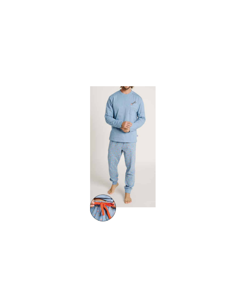 Pijama de punto con afelpado interior, dibujo estampado en la blusa y pantalón estampado.