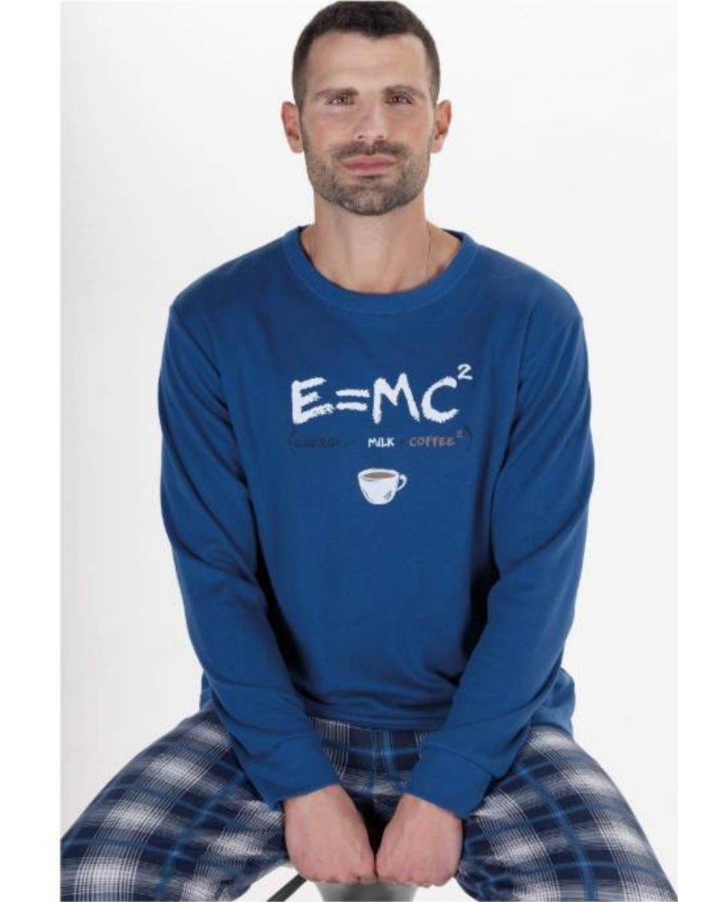 Pijama en interlock con interior afelpado con puños en mangas y pantalón.