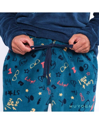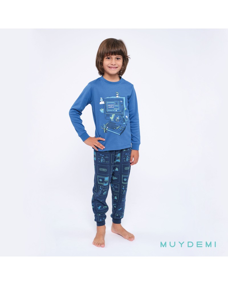 pijama de algodón sin afelpar con puños en mangas y pantalón