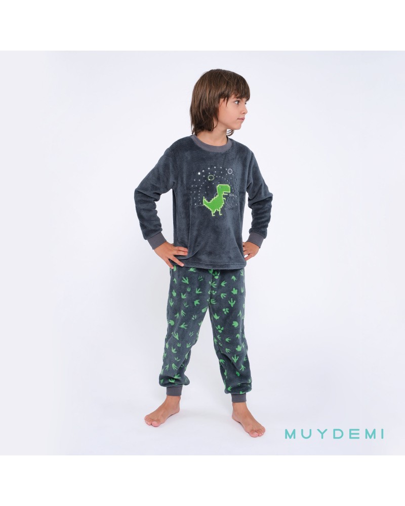 Pijama de coralina con dibujo en la camiseta y pantalón estampado