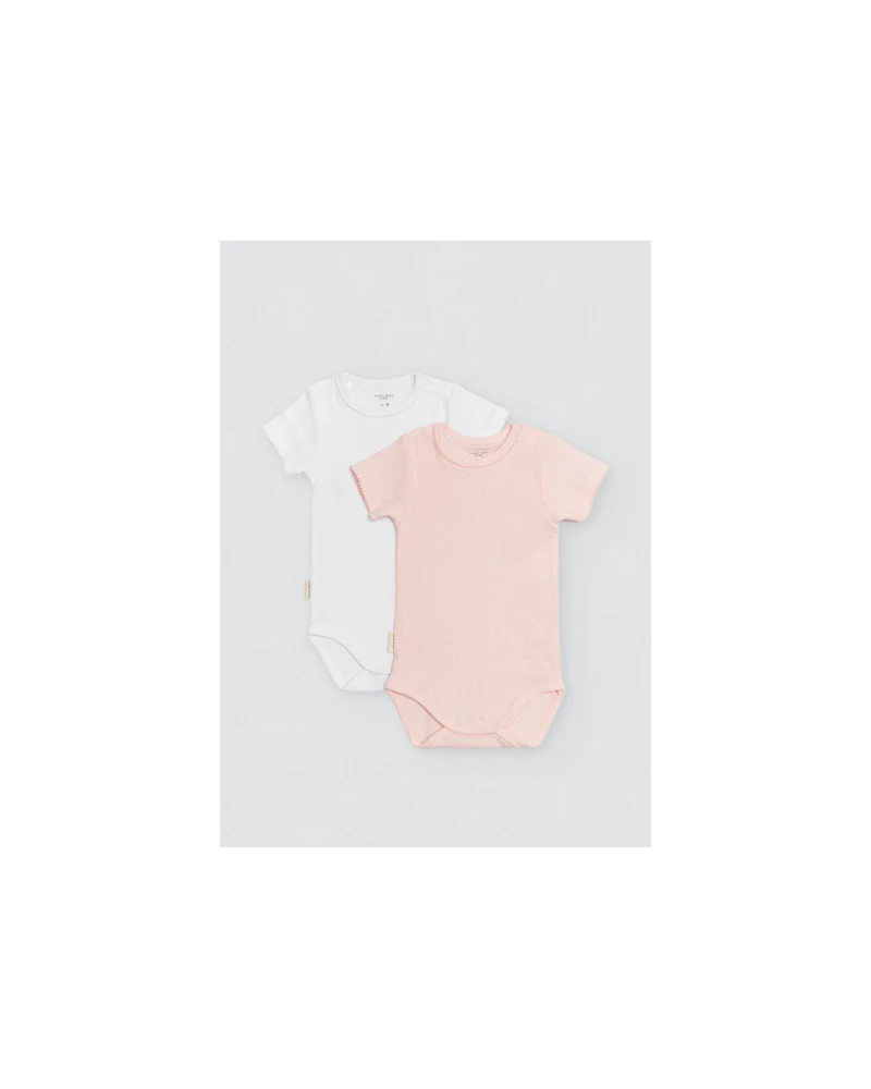 Pack de 2 bodies de manga corta para bebé. La unidad está compuesta de algodón 100% natural para que los más pequeños puedan disfrutar sin preocupaciones.