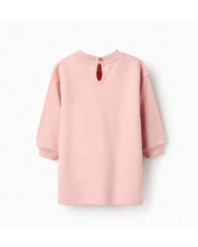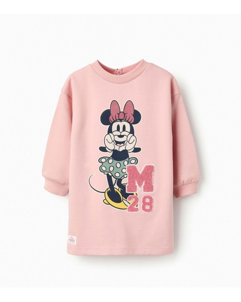 Vestido-sudadera rosa para niña, con interior de punto suave para máximo confort. 100 % algodón. Estampado frontal de Minnie, con detalles en relieve de bouclé. Puños acanalados para un ajuste perfecto. Botón en la espalda para vestir fácilmente.