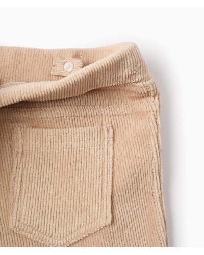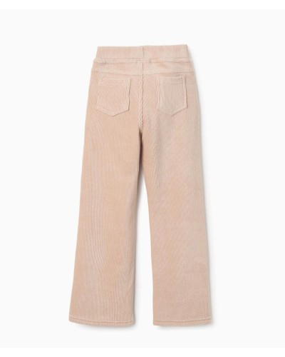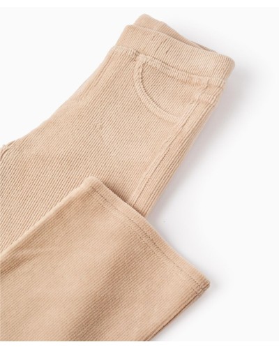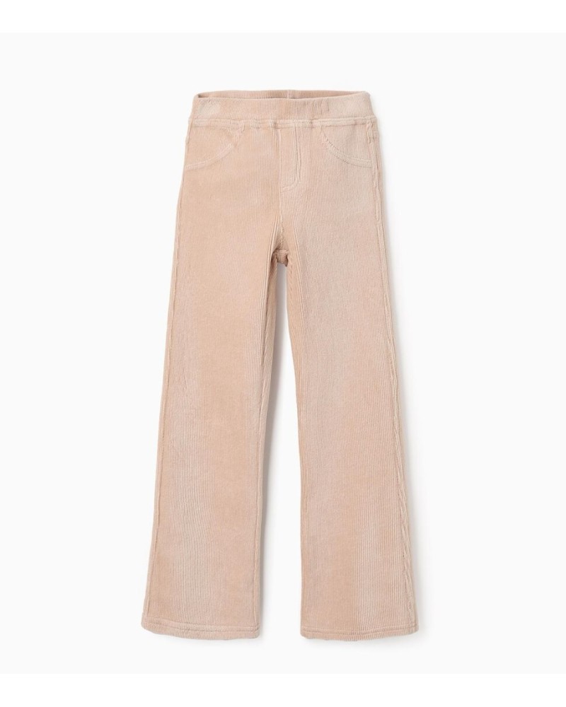 Jegging de pana beige para niña, fabricado en mezcla de algodón flexible para mayor comodidad y libertad de movimiento. Modelo acampanado. Bolsillos decorativos delante y bolsillos funcionales detrás. Cintura elástica, ajustable en el interior con elásticos y botones. ¡Una opción trendy, acogedora y cómoda, ideal para otoño-invierno!