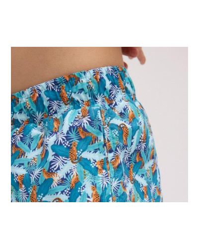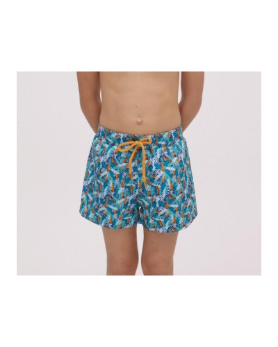 Bañador corto de niño con estampado de gatos. Bolsillo lateral.Secado rápido.