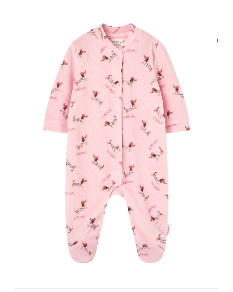 ESTAMPADO DE PERROS SALCHICHA CON FONDO ROSA.