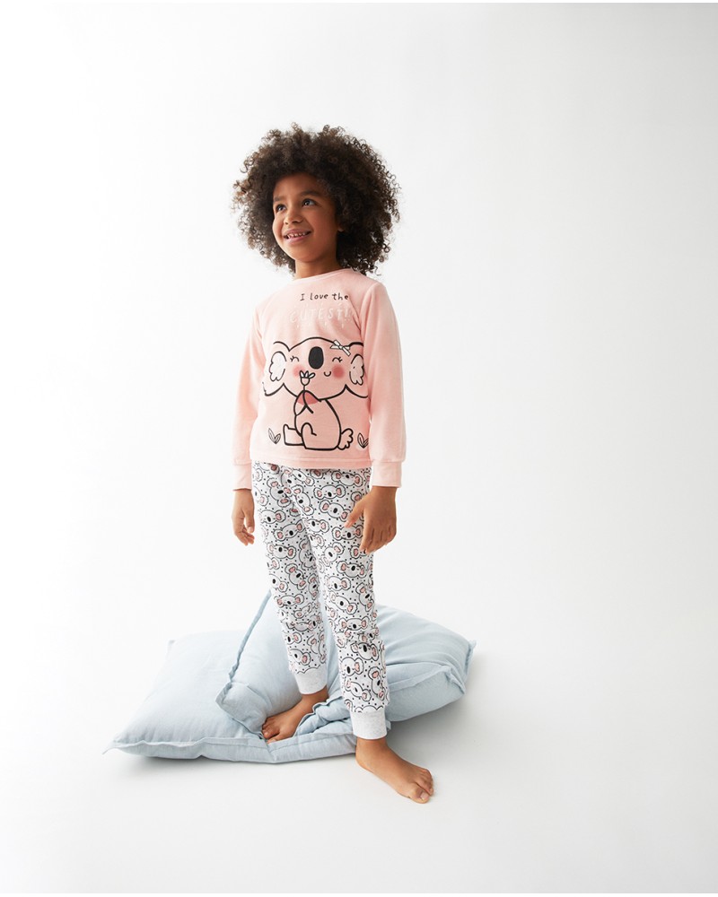 Pijama con dibujo de koala en la camiseta y pantalón estampado. Con puños en pantalón y mangas