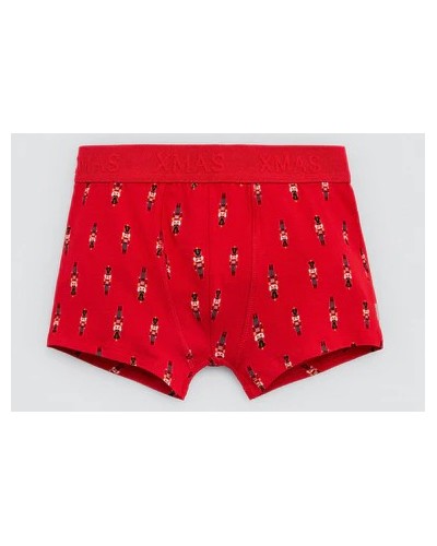 Bóxer juvenil con estampado de cascanueces sobre fondo rojo. Diseño de Navidad, perfecto para estas fiestas.