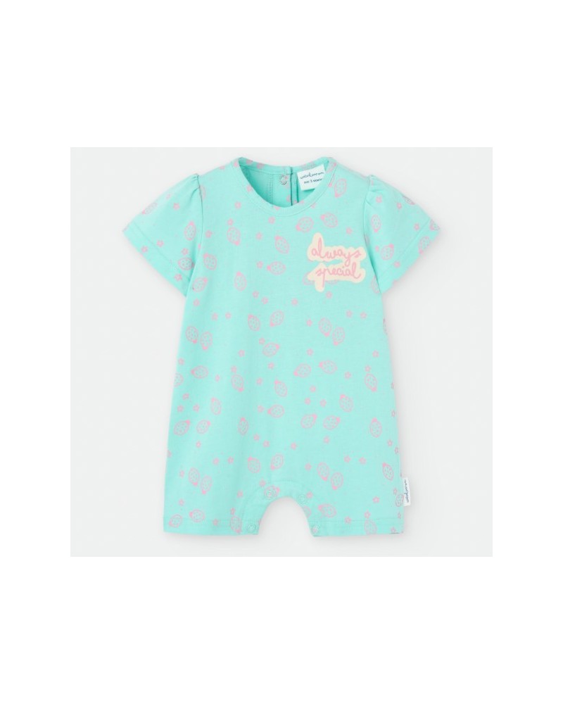 Pelele de manga corta muy veraniego con un estampado de mariquitas.