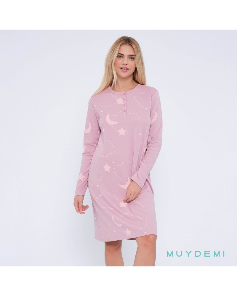 Camisón de mujer con interior afelpado sin puños en las mangas.