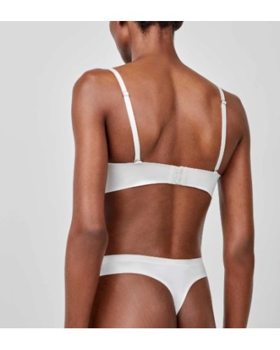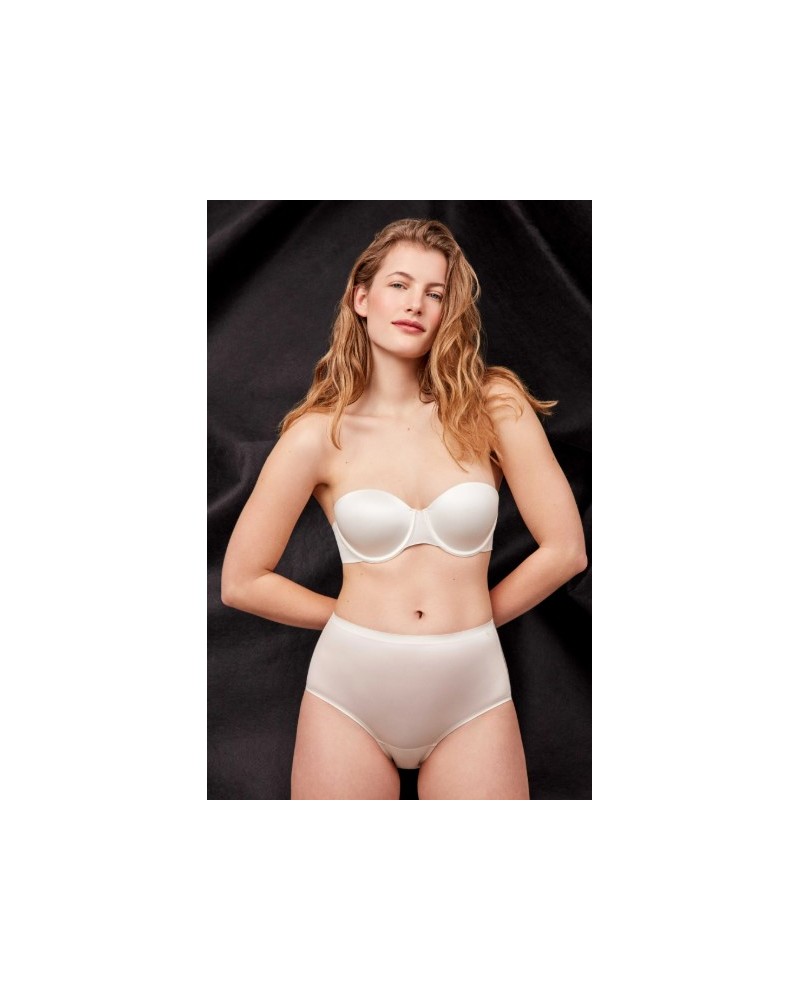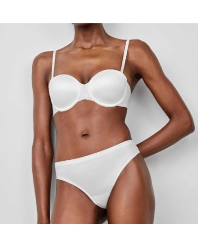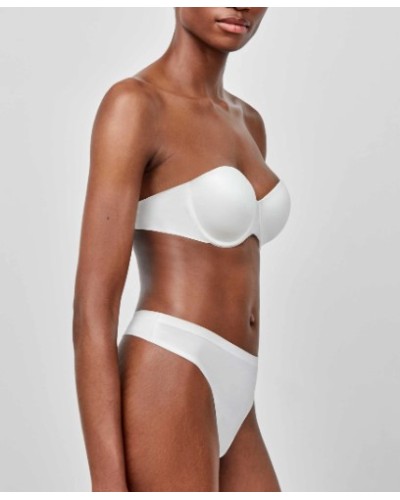 Sujetador desmontable en microfibra satinada. Espaldilla laminada siliconada con corte láser que no marca bajo la ropa. Broches termofusionados con acabados en satén. Tirantes desmontables satinados y extrasuaves.
