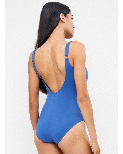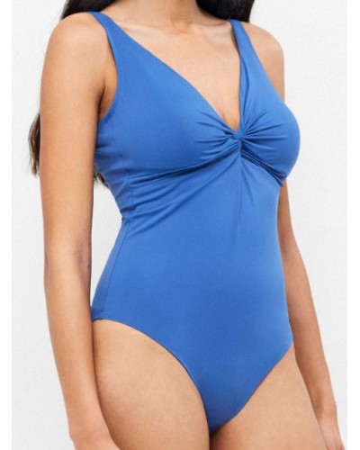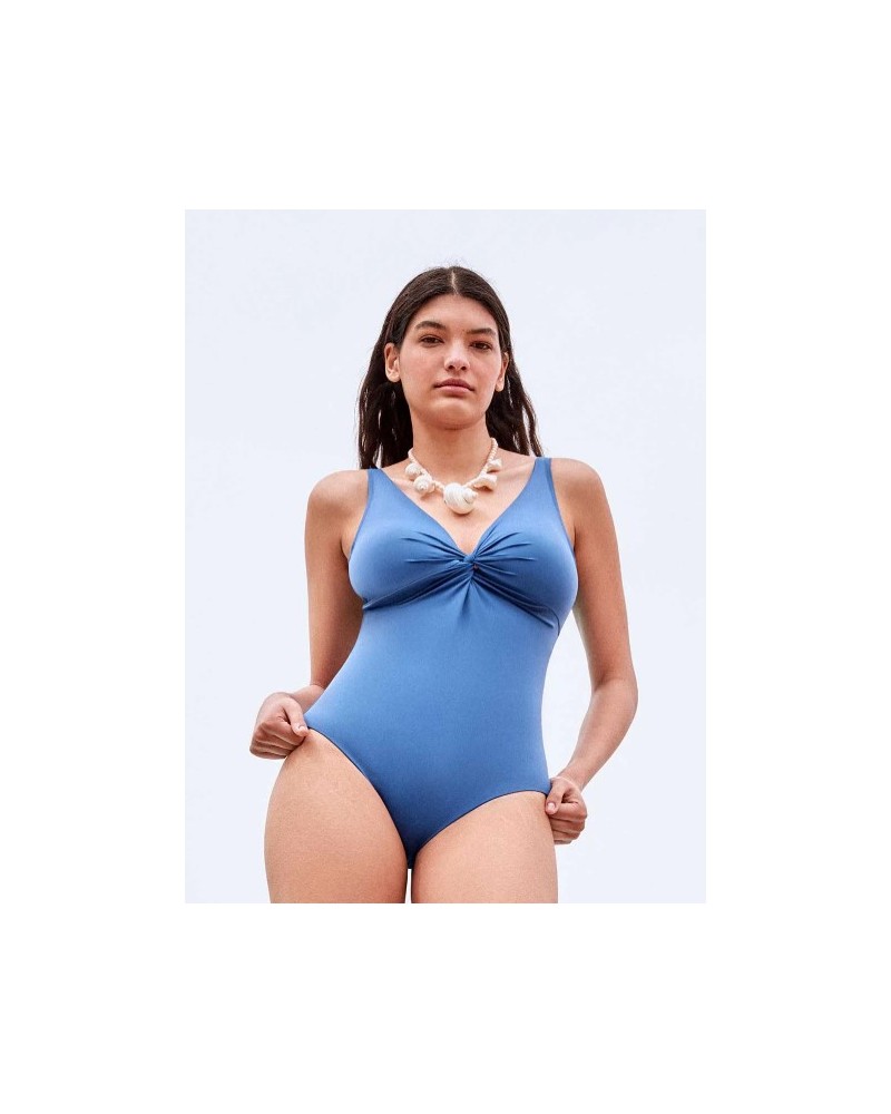 Bañador plus size y efecto moldeador sin opresión, sin aro y con copa fija. Detalle de nudo en escote que estiliza la zona y tirantes regulables.