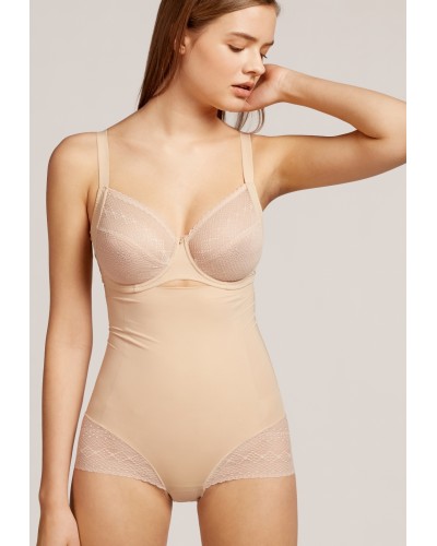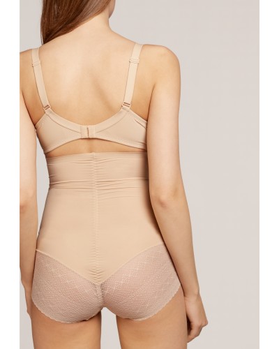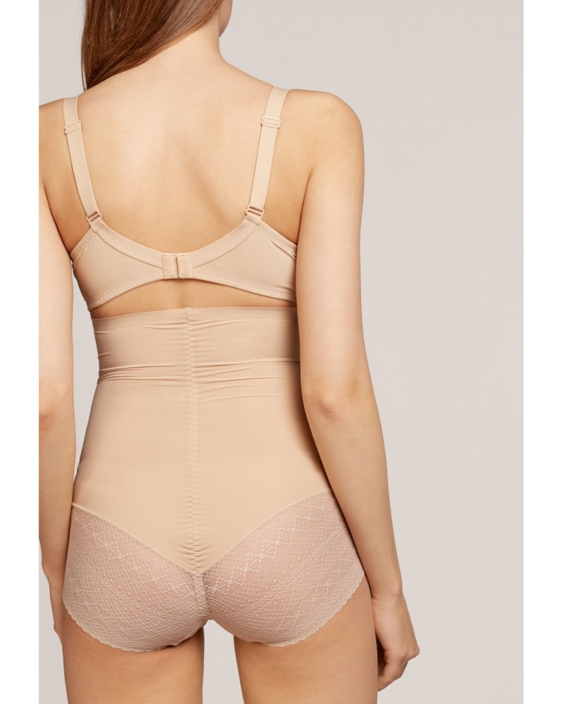 Braga súper alta moldeadora con acabados termofusionados y efecto vientre plano. Tejido de microfibra con refuerzos extra control. Bandas de silicona antideslizante en cintura y trasero en tejido de encaje efecto tanga.