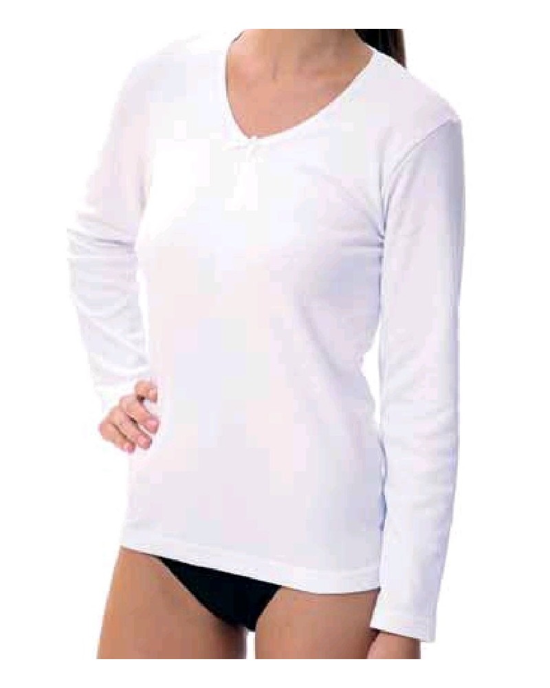 camiseta de interior de manga larga con el cuello en pico y el interior afelpado