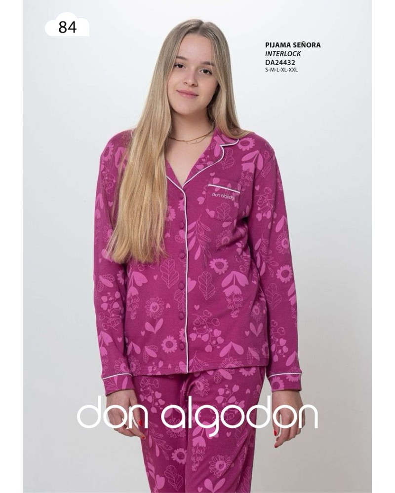 Pijama en algodón abierto con cuello de solapa y bolsillo en camisa.
