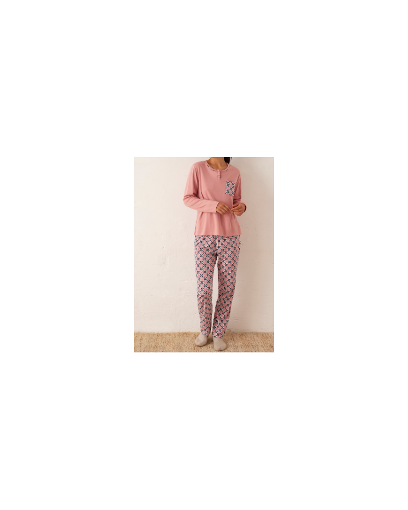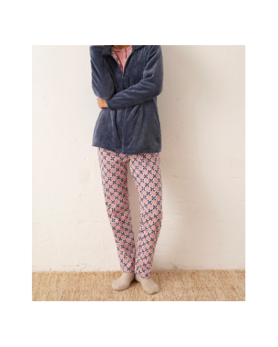 Pijama sin puños en camiseta y pantalón, estampado en pantalon de flores y el interior de la camiseta es afelpado