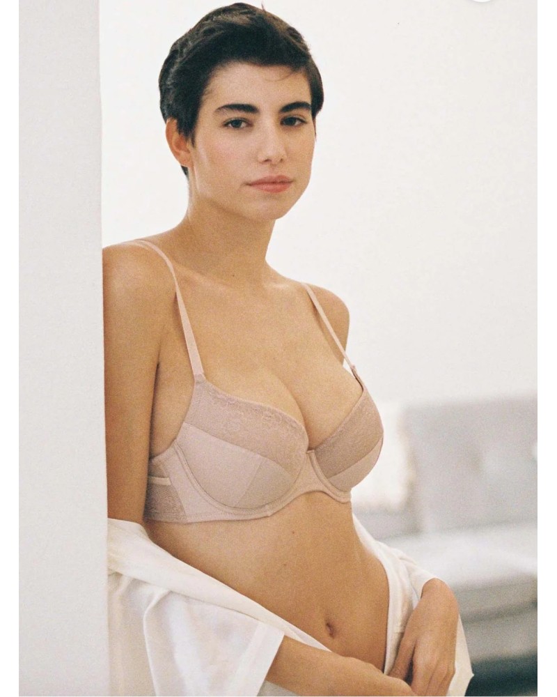 Sujetador con copa de capacidad relleno fino y aros. Laterales en tul con corte laser diseñado para cubrir y estilizar la figura. Centro pecho...