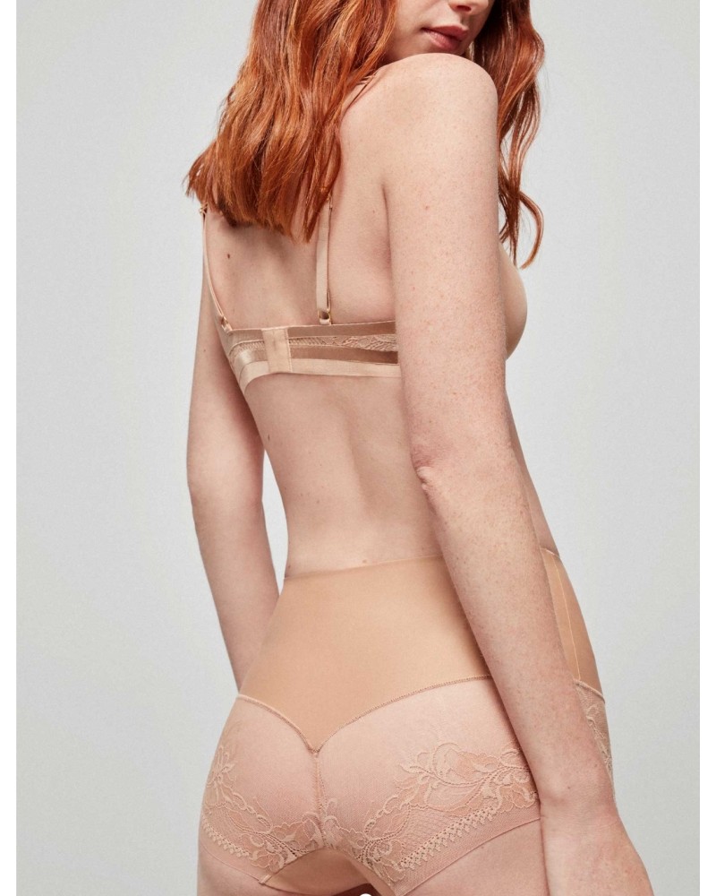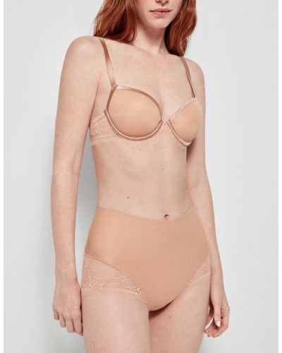 braga alta con control ligero, parte trasera de encaje sin costuras par evitar cortes y marcas en la ropa, y termosellado en la cintura. Rombo zona intima de algodón.