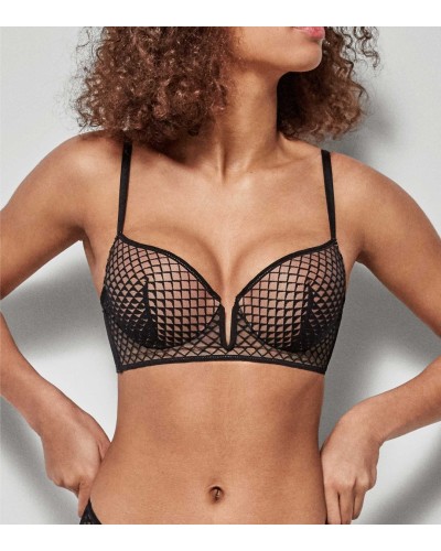 Sujetador capacidad en tejido de encaje con aro y foam. Tirantes regulables que incluyen enganche para poder cruzarlos. Espaldilla anatómica de...