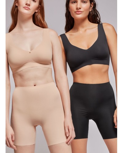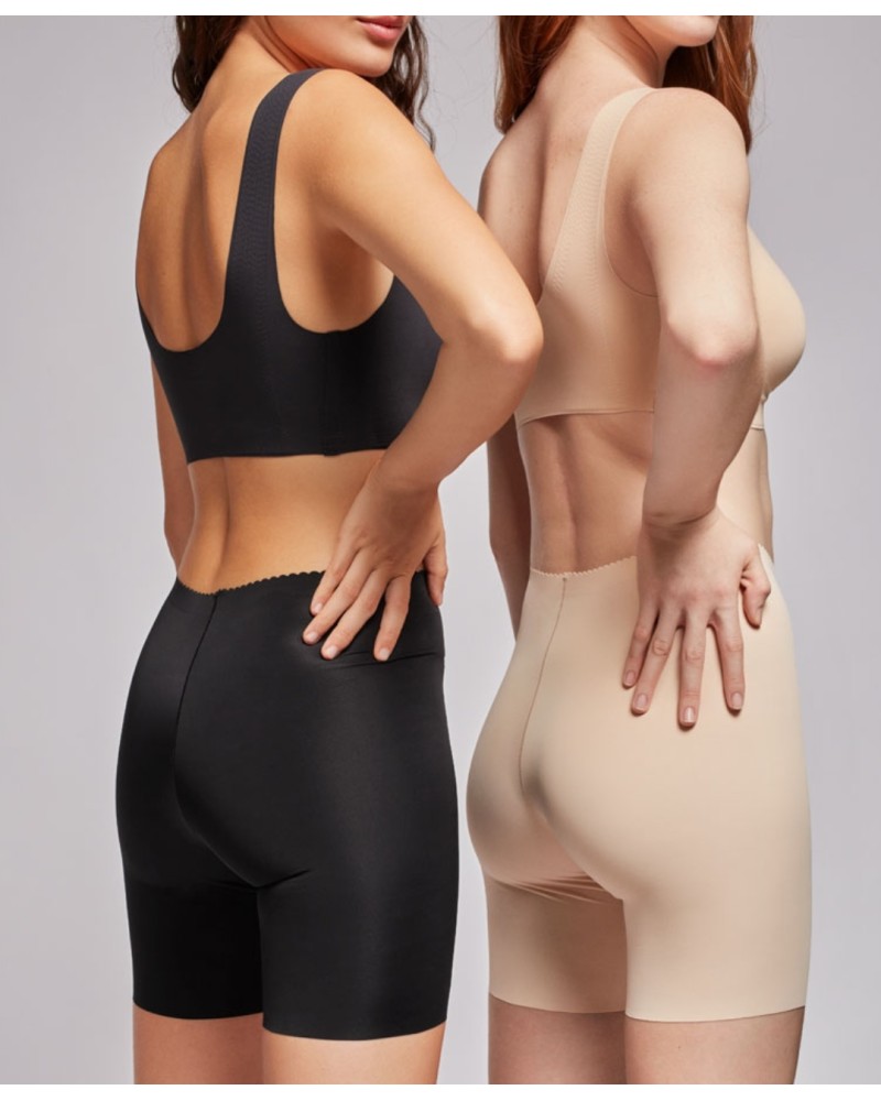 Pantalón moldeador invisible efecto envolvente en tejido de microfibra con cintura termofusionada y corte láser para evitar marcas bajo la ropa. El tejido de microfibra hace que la prenda sea suave y flexible y no se deforma con el paso del tiempo.